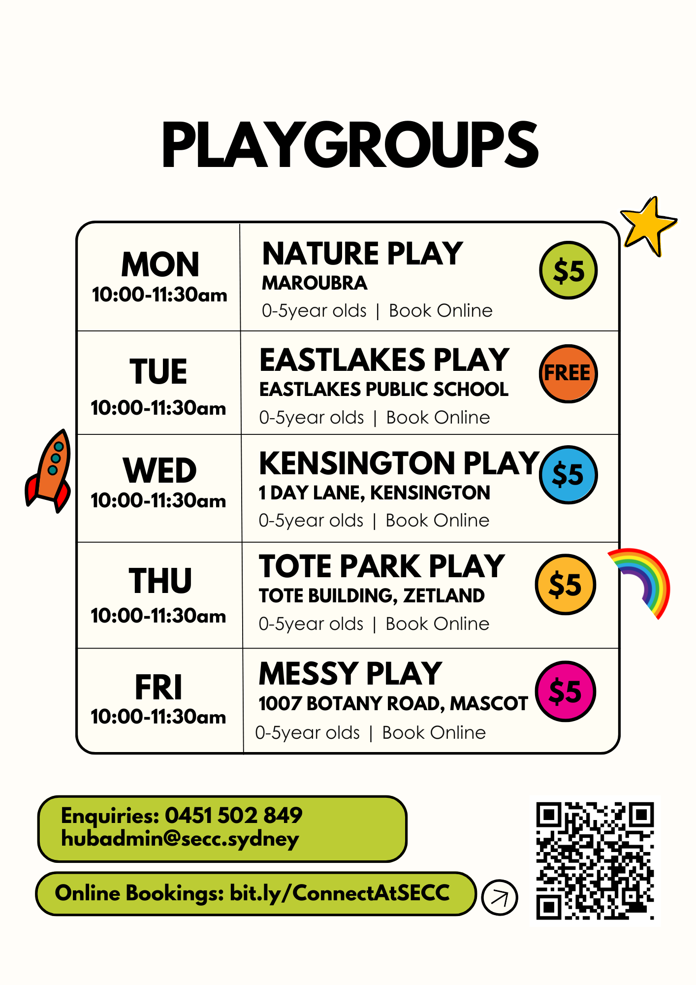 Call the SECC Hub at (02) 7903 0607 or drop in for a visit at 1007 Botany Rd, Mascot to say hello.