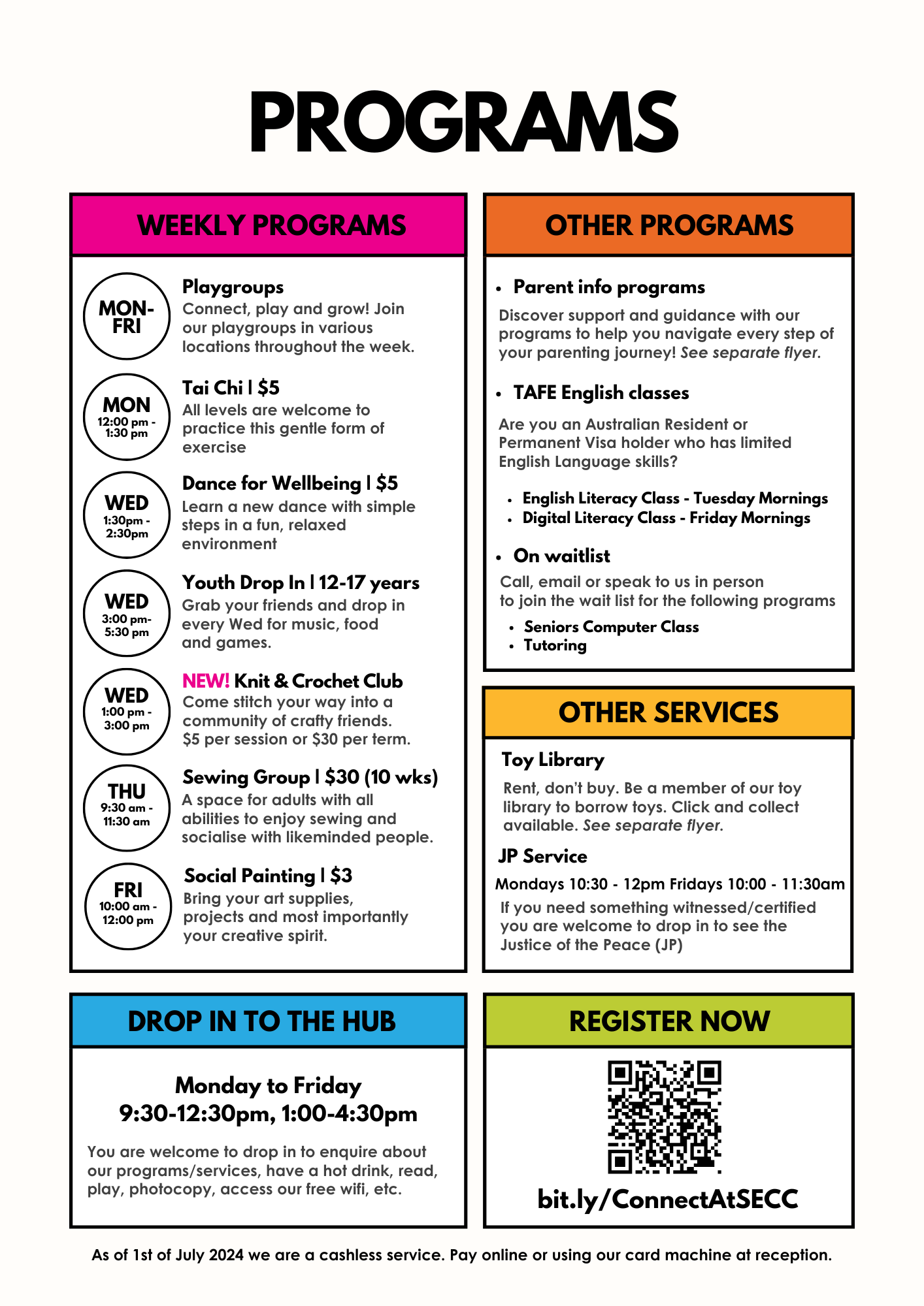Community is what sets SECC apart. Our much-loved NFP is committed to making South East Sydney stronger. Why not help us build a community people want to be part of? A community that’s attractively different? Let’s work together. Together in community at The SECC Hub.