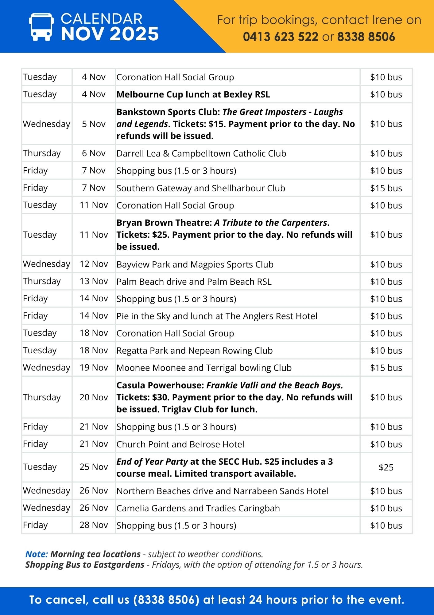 - Bus trips and social outings